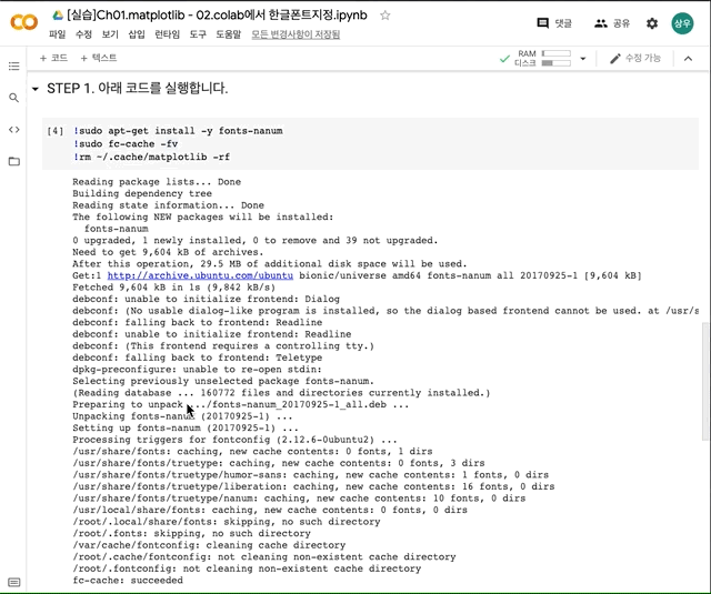 실행이 완료된 후에는 상단의 런타임 메뉴에서 런타임 다시 시작을 클릭해주신 후, 그 전에 실행했던 라이브러리 import와 데이터 셋 불러오기를 다시 해주셔야 합니다.