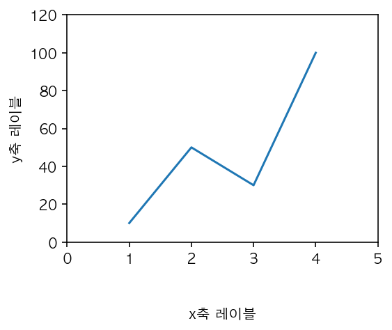 plt.xlabel('x축 레이블', labelpad=30, loc='right')