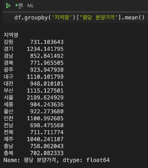 df.groupby('지역명')['평다 분양가격'].mean()