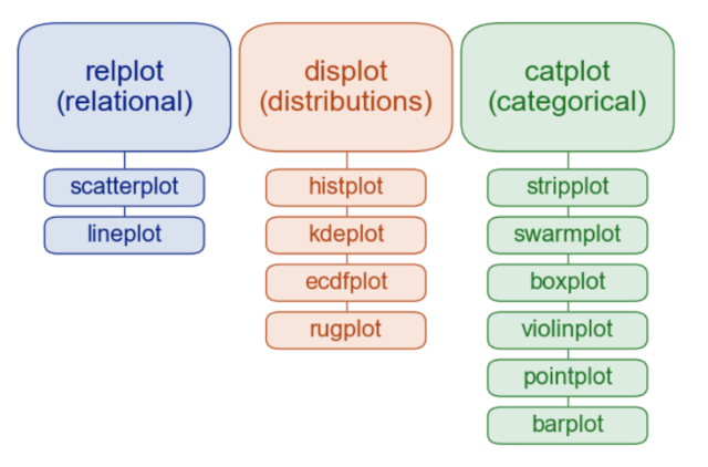 위의 그래프들을 분류해보면 관계형 그래프, 분포형 그래프, 카테고리형 그래프로 3가지로 크게 나누어 볼 수 있습니다.