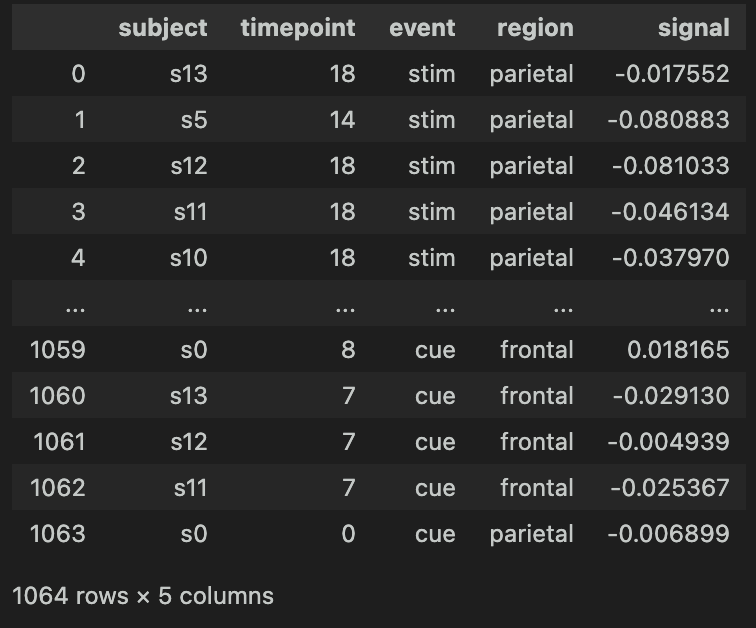 해당 데이터셋은 fmri라는 데이터 셋으로, fmri(기능적 자기 공명영상)은 혈류와 관련된 변화를 감지하여 뇌 활동을 측정한 데이터입니다.