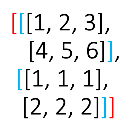 가독성을 위해서 색깔을 넣어보았습니다. 보시면 가장 바깥의 괄호가 요소를 2개를 갖고 있으니 axis 0의 크기는 2가 되겠네요.