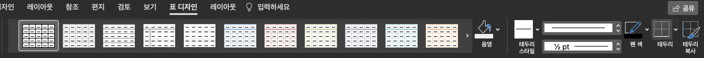 참고로 위에서 표 스타일을 Table Grid로 해주었는데, 이 스타일은 가장 기본적인 스타일입니다.