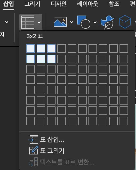 우리가 워드를 사용할 때 표를 삽입하려면 가장 먼저 행과 열의 갯수를 설정해주어야 하죠?