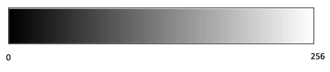 그레이스케일 영상은 픽셀 하나를 0~255 범위의 정수로 표현합니다. (0이 검정, 255가 흰색)