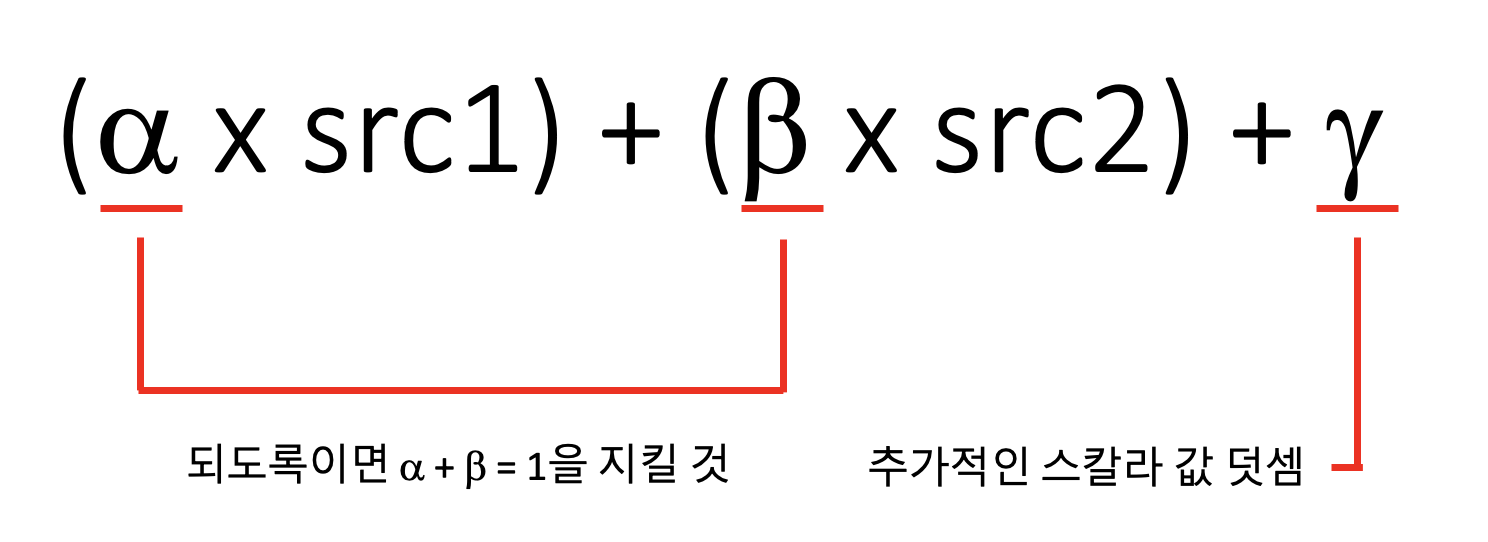 그렇다면 이미지를 각자 다른 비율로 더해주고 싶을 땐 어떻게 해야할까요? 그럴 땐 아래의 함수를 사용해주시면 됩니다.
