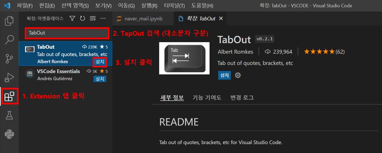 1. vscode 자동완성 함수안에서 괄호밖으로 탭키로 나가기_개인블로그(PABBURI)