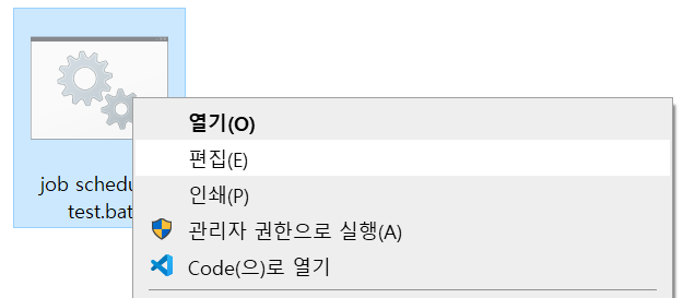 이름을 바꾸신 후에 batch 파일을 그냥 더블 클릭하시면 열리지 않고, 우클릭을 하신 후 편집을 클릭해주셔야해요.