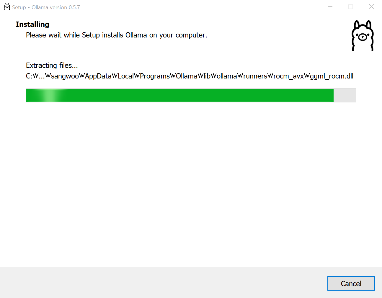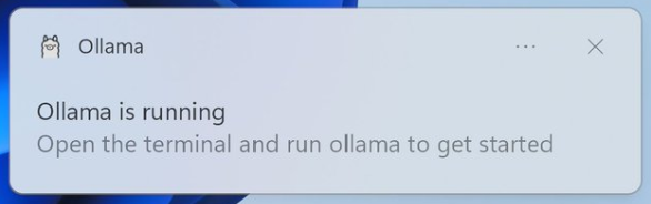 Step4. 설치가 완료되면 설치창이 사라지고 화면 우측 하단에 "Ollama is running" 이라는 팝업창이 출력됩니다.
