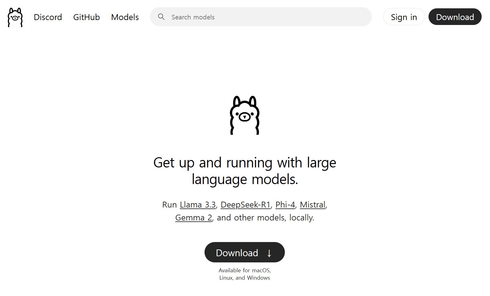Ollama는 로컬 환경에서 AI 모델을 실행할 수 있도록 도와주는 프로그램으로, 인터넷 연결 없이도 AI 기능을 활용할 수 있습니다. MacOS, Windows, Linux에서 사용할 수 있으며, 다양한 AI 모델을 쉽게 다운로드하고 실행할 수 있습니다. Ollama 이외에도 LM Studio, GPT4All, Msty 등의 더 사용자 친화적인 프로그램들이 있지만 Ollama는 회사에서도 무료로 사용할 수 있는 라이선스라는 것이 장점이라고 할 수 있습니다.