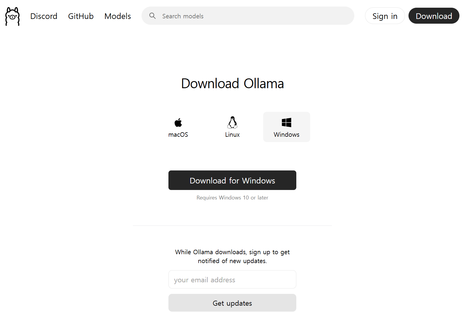 Step1. Ollama 공식 웹사이트에 접속한 후, Download 버튼을 클릭합니다.