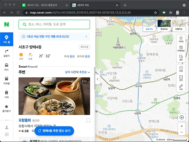 case2. 보고 있는 위치에 출력 결과와 url이 계속 변하는 네이버 지도