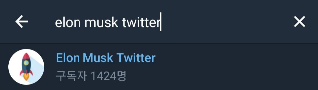 먼저 텔레그램 앱을 휴대폰에 설치하신 후, 아래와 같이 elon musk twitter 채널을 검색해 줍니다.