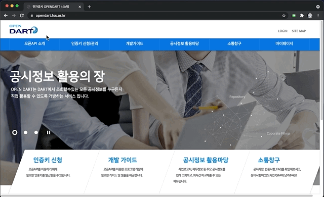 DART API를 사용하기 위해서는 API 인증키를 신청해주셔야 하는데요.