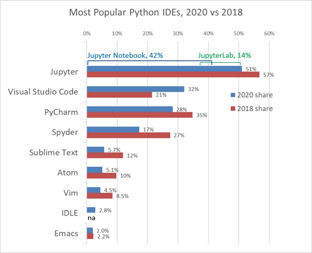 이런 장점 덕분에 VSCode는 한 설문 조사에서 '2020년 가장 인기있는 파이썬 IDE의 인기순위'에서 2위를 차지했습니다.