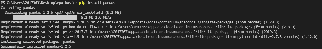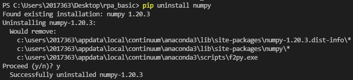 터미널 창에서 아래와 같이 pip 명령어를 이용해 pandas와 numpy 패키지를 삭제 및 재설치 하면 됩니다.