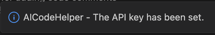 입력 후 엔터를 누르시면 화면 우측 하단에 아래와 같은 메세지가 출력됩니다. 그러면 API Key가 정상적으로 등록된 것입니다.