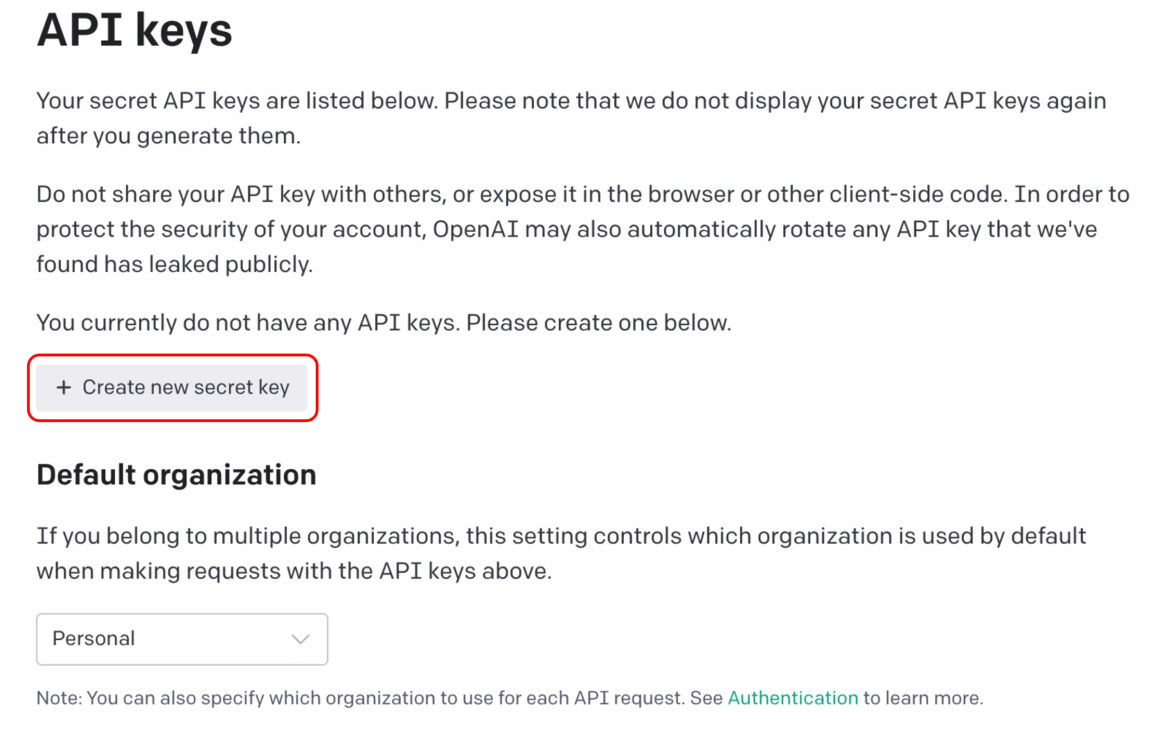 VScode로 넘어가서 OpenAI API를 코드로 다루기 전에 해야할 일이 있습니다. 바로 API key를 발급받는 것입니다.