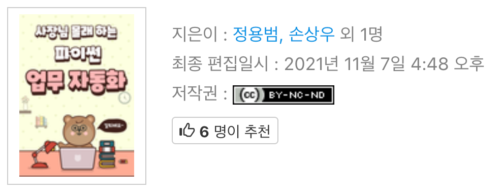 최근 몇 개월간 동료와 함께 '파이썬 업무자동화' 관련 책을 위키독스라는 플랫폼 위에서 집필하였고, 이 글을 빌려서 공개해보려 합니다.