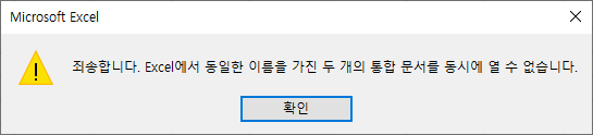 2) win32com으로 엑셀을 다룰 때, 같은 이름의 엑셀 파일이 열리면 아래와 같은 오류가 발생한다